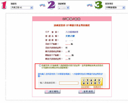 ★Step5-2.請確認欲轉點的點數,並輸入GF滑鼠密碼鎖。