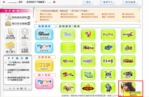 為了保障GF轉點的安全,請先設定「滑鼠密碼鎖」,在轉儲各遊戲專用點數時必須輸入「滑鼠密碼鎖」,才能轉儲成功;若未設定則無法完成轉點步驟。